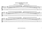 The diagrams that follow show all of the C octatonic major-minor scale notes plotted over the 5-string bass' fretboard in the BAGED octaves and GuitarPro6 styles:-