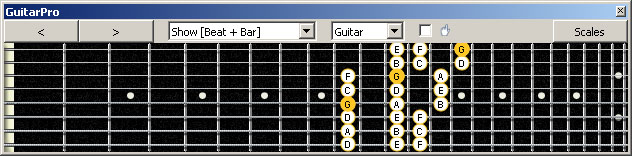 The diagrams that follow show all of the G mixolydian mode notes plotted over the