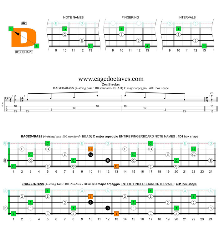 C major arpeggio are detailed below in the BAGED4BASS manner.