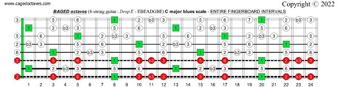 for 8-string guitar (Drop E - EBEADGBE) to form one long BAGED octaves chain.