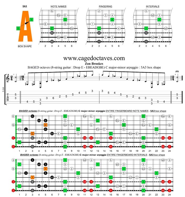 C major-minor arpeggio are detailed below in the BAGED octaves manner.