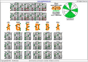 Once the individual box shapes have been assimilated all five shapes should be linked together and played in one continuous exercise (with the first shape - 5Am3 - being repeated at the 12th fret). |