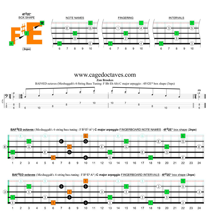 In this BLOGoZON we take a look at the C major arpeggio , but with 3nps shapes and join them all together for MESHUGGAH's 4-string bass tuning (F B♭ E♭ A♭) to form one long BAF♯ED octaves chain.
